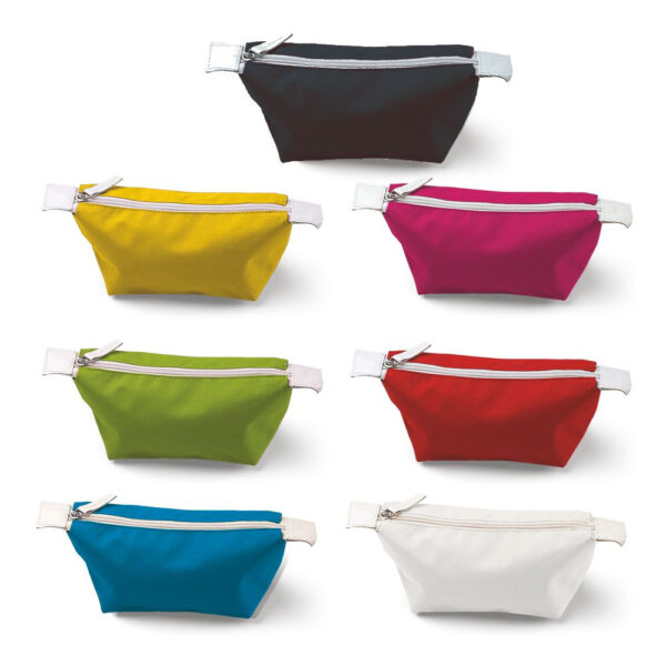Pochette in poliestere. Chiusura con zip bianca. Colori: nero, bianco, rosso, fuxia, sky, giallo, verde. Confezione in polybag. Dimensioni cm. 23×10,5×10 Imballo: 100xcolore